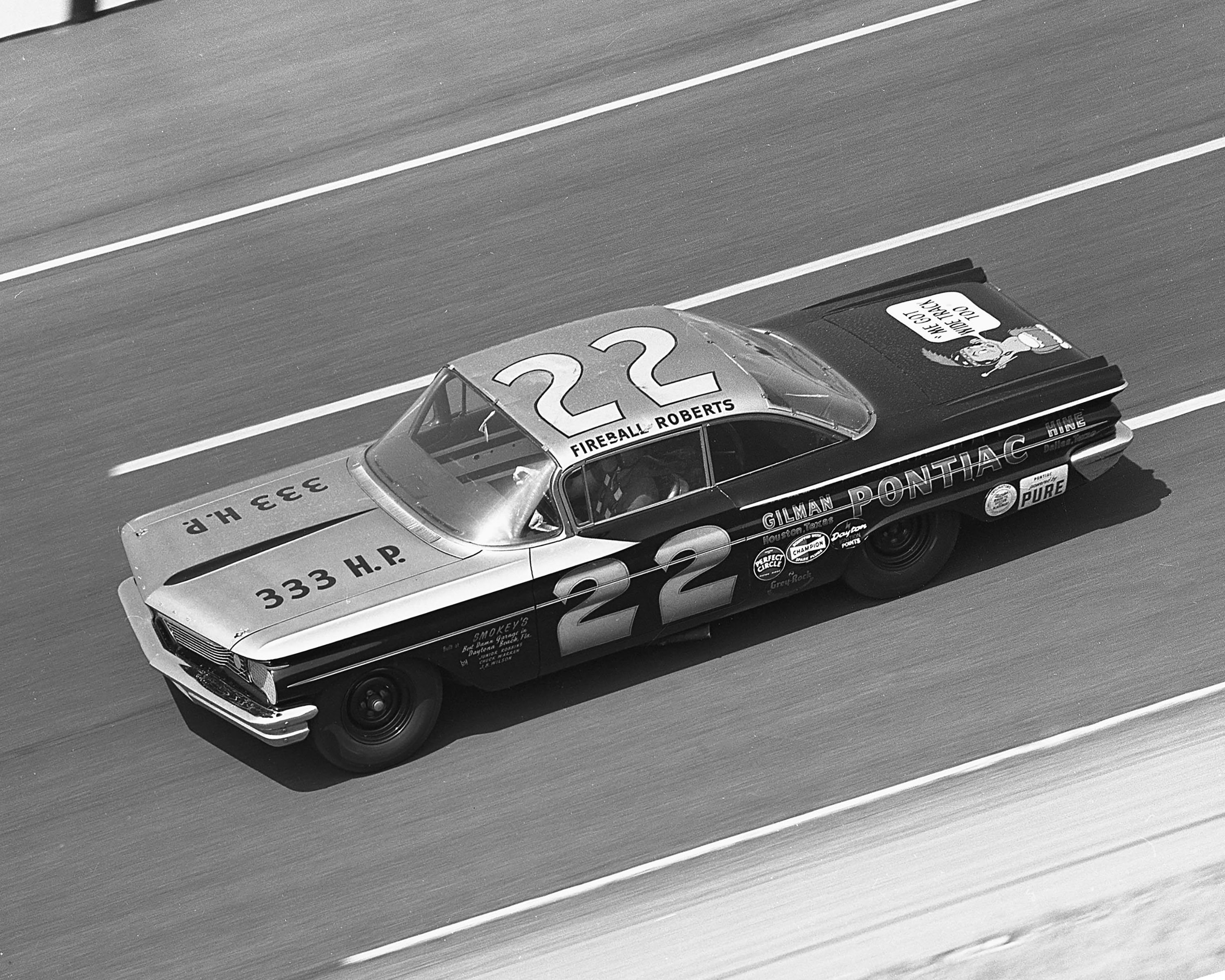 Though his nickname stemmed from hurling fastballs during sandlot baseball in Apopka, Florida, and not from driving race cars, Roberts had been around the wheeled sport for a long time, running his first race on the short oval at North Wilkesboro, North Carolina, in 1947. He was a reliable winner in both Modifieds and then in the Grand National division, including on the sand at Daytona Beach, but his rise to true superstardom was abrupt and meteoric. It began in 1956, when he was invited to join the factory Ford team run out of Charlotte by Indianapolis 500 winner Pete DePaolo. In 75 starts – the NASCAR schedule was considerably busier in those days – Roberts scored 13 wins and 38 top-fives. The win streak continued and in 1959, Roberts teamed up with his fellow Daytona Beach resident, the self-taught mechanical genius Smokey Yunick, to run Yunick’s stable of black-and-gold Pontiacs. The 1960 model here in this photo by ISC Images and Graphics typifies these cars.