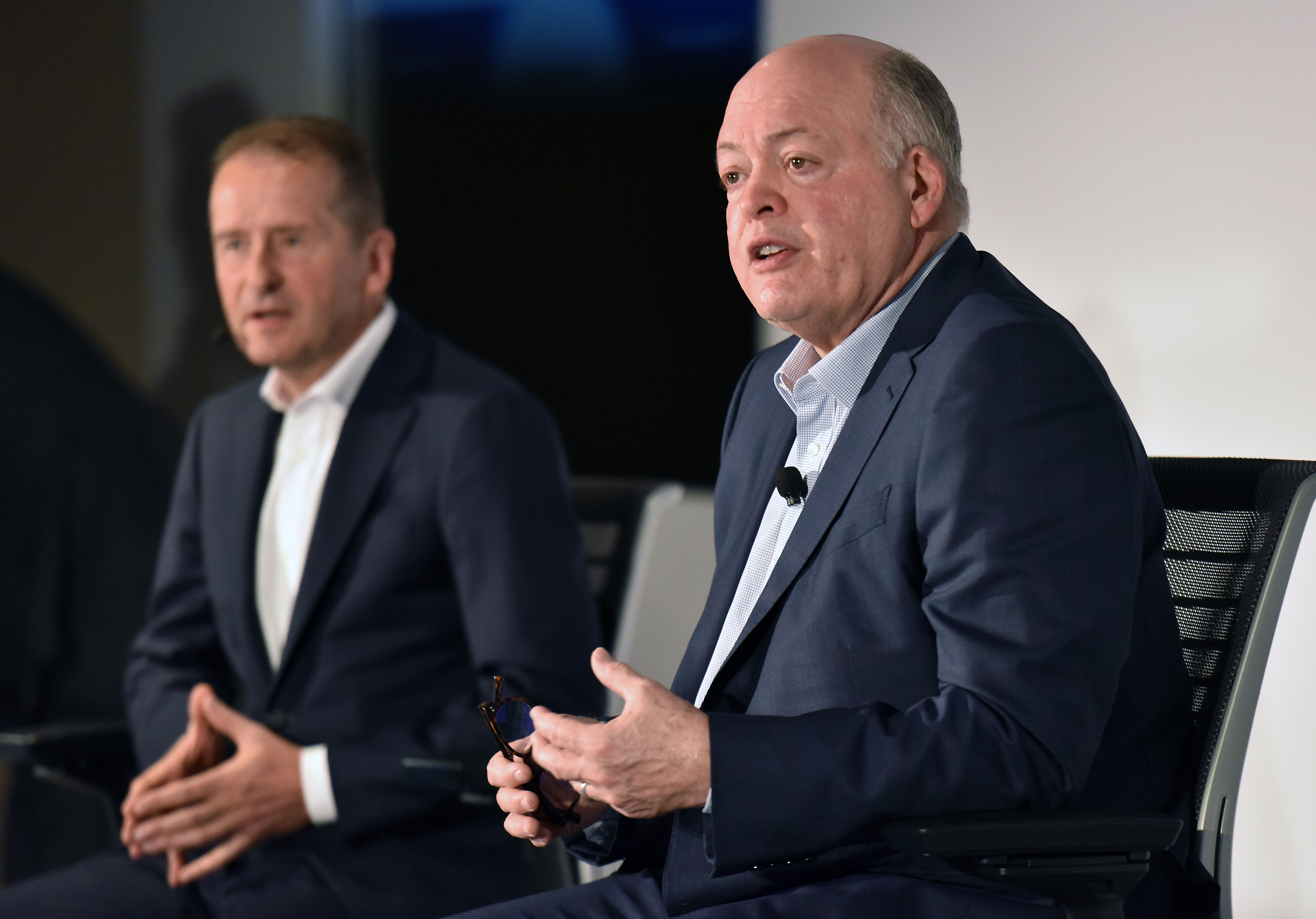 This photo by Ford shows Volkswagen CEO Dr. Herbert Diess (left) and Ford president Jim Hackett discussing the new deal at its rollout. The agreement calls for Ford to use Volkswagen’s existing architecture for electric vehicles and Wolfsburg’s Modular Electric Toolkit to design and build at least one fully electric vehicle for the European market by 2023. That will an initial step toward Ford using the agreement to develop its own electric vehicles for North American buyers as time unfolds. While the new alliance does not involve cross-ownership by either Ford or Volkswagen, at least part of the objective is to develop new commercial vans – think the Ford Transit – and light trucks for a variety of global markets. Combined, the automakers will become majority shareholders of Argo AI, and Ford expects the pact to let it build at least 600,000 electric vehicles using Volkswagen electric technology – including, Ford conceded, the possibility of an electric Explorer and Mustang for export sales.