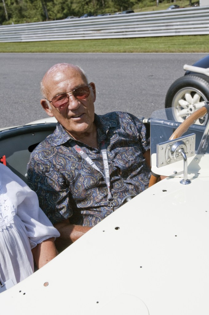 Fangio would go on to win the F1 world title five times during the 1950s. Moss, on the other hand, had started his career in a Cooper 500, and would show a patriotic preference for British cars during his F1 career, most notably Cooper, Vanwall and Lotus, which weren’t always competitive with the purebloods from Germany and Italy. In 1958, he defended rival Mike Hawthorn after Hawthorn was accused of deliberately reversing direction at the Portugese Grand Prix, which allowed Hawthorn to win the F1 title over Moss by six points. When he did drive for non-British marques, though, Moss made magic: In 1955, he shattered the lap record en route to winning Italy’s iconic Mille Miglia road race, teaming aboard a Mercedes-Benz 300 SLR sports car with motoring journalist Denis Jenkinson, who navigated using handwritten pace notes. Moss was in the prime of his career when he had a devastating accident at Goodwood in 1962 that left him comatose and temporarily paralyzed. Moss, who also owned world speed records set at Montlhery and Bonneville, then turned to broadcasting, but continued to participate in vintage racing until he was 81. That’s when I got to know Sir Stirling, having photographed him (as above) and interviewed him when he was guest of honor at Lime Rock Park’s vintage festival in Connecticut. Moss was here about to lap Lime Rock with his wife, Lady Moss, aboard the 1.5-liter O.S.C.A. that he used to win the 12 Hours of Sebring in 1954, despite having no brakes for most of the going. Moss and Susie were profoundly conversational and charming people, and I got to interview Sir Stirling several more times after the Lime Rock encounter. He had exactly two regrets: Never having the opportunity to race against the great Jim Clark, and never getting the chance to race in the Indianapolis 500. Race on, knight of speed.