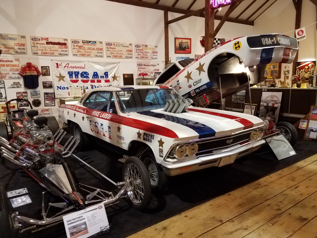 He continued racing and in 1965, found himself in a 289-cu.in. Shelby Cobra, running in the NHRA’s AA/Sports Car category. That year, Bruce won three NHRA national events, including the U.S. Nationals at Indianapolis, while taking the national class record away from another Cobra fielded by Carroll Shelby himself. Around that same time, Bruce was working at Sutliff Chevrolet in Harrisburg, whose boss figured (correctly) that being involved in motorsports would help to sell new cars. At the time, the NHRA had a class called Factory Experimental that allowed racers to do all sorts of crazy things to stock-bodied drag cars that weren’t legal in other categories. Sutliff’s entry was an altered-wheelbase 1966 Chevelle motivated by a fuel-injected Chevrolet big-block, but the car had a major difference: It was the first A/FX car in the United States with a full fiberglass body. It became the template for what the NHRA later renamed its Funny Car division. The Chevelle’s in the middle of the next photo, and now is a prominent exhibit at the Don Garlits Museum of Drag Racing in Ocala, Florida.