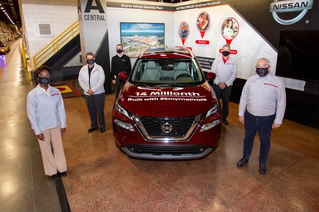 The honored vehicle turned out to be a 2021 Nissan Rogue finished in Scarlet Ember Tincoat. Besides the Rogue, Smyrna also builds the Nissan Murano, Pathfinder, Maxima and the Infiniti QX60 premium SUV. Another product from Smyrna is the electric Nissan LEAF, whose onboard batteries are also manufactured on site, as will the EV’s forthcoming second-generation replacement. Nissan trivia: The first vehicle to roll out of Smyrna was a plain white Nissan 720 standard-cab pickup, with the compact Sentra being the first dedicated U.S. vehicle produced there.