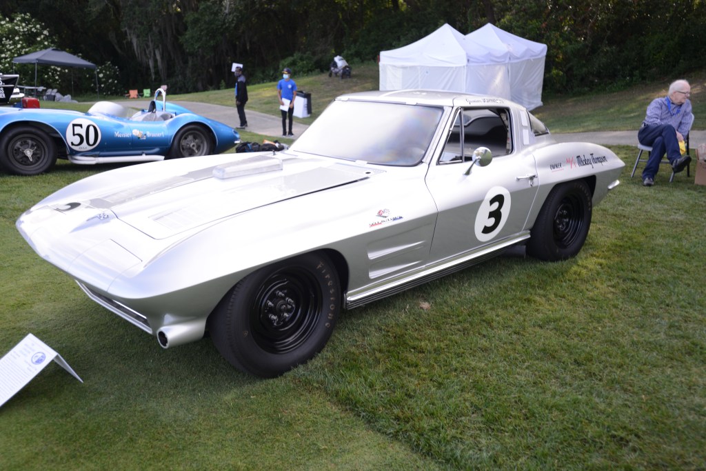 Yes, this is a racing Corvette. And appropriately, it was on the show field at Amelia Island last weekend. But there’s a big difference between this and the other famous Corvettes from the early 1960s. Look at the beefy steel wheels, because they’re a hint of what’s coming. In late 1962, Chevrolet sent six of its new Z06 split-window Corvette coupes to Mickey Thompson in California to be prepped for an upcoming road-course event at Riverside International Raceway. The only thing is, two of the coupes never made it to Riverside. Instead, both were prepped to run in what was apparently a NASCAR Grand National open-competition event on the 2.5 mile high-banked oval at Daytona International Speedway. That’s where things get interesting.
