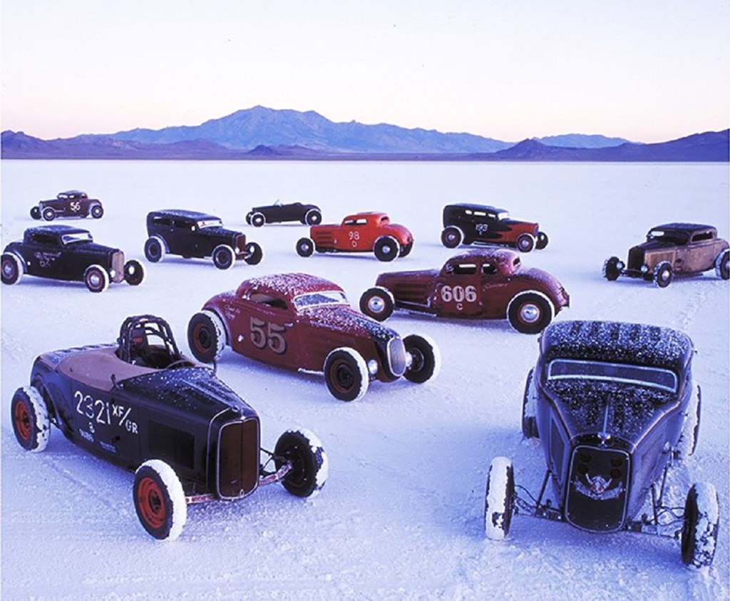 This image by the hot rod artist Peter Vincent shows some of the Rolling Bones fleet in its most apropos setting. The scenery is about to change radically, as the Rolling Bones are getting a star turn at Salon Prive, one of the United Kingdom’s most prestigious automotive gatherings, its concours being held September 1st through 5th at Blenheim Palace in Woodstock, Oxfordshire, England, best known as the birthplace of Sir Winston Churchill. How come? Because a Rolling Bones creation, any of them, is widely accepted as automotive art, given that these guys accept nothing less than minimalist full-race hot rods as the anointed Real Deal. The Rolling Bones are expected to make a proper entrance, rip-snorting their rods along the estate’s lanes en route to the show field. As a former upstate resident, who really appreciated the Bones ripping the hard-packed sand at TROG in Wildwood, New Jersey, this is ultra-rich. Well done, brothers.
