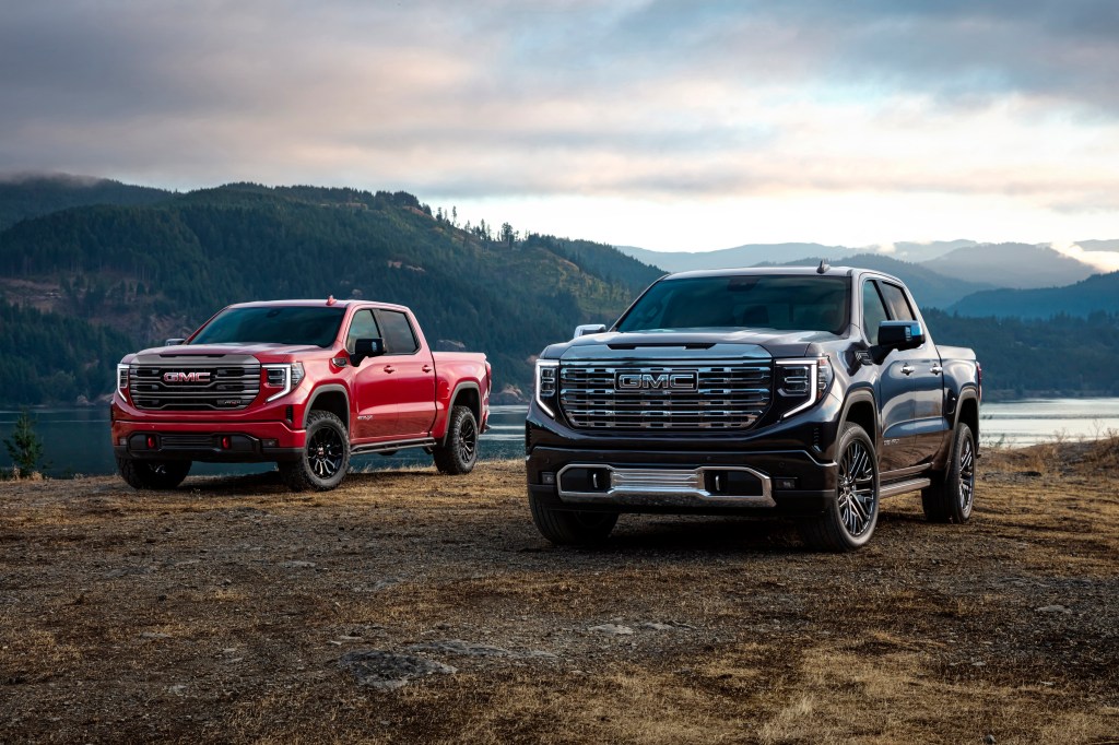 In the world of more traditional, full-size pickups, GMC is making clear that’s it’s swinging for the fences when it comes to both buyer options and technical capability. The 2022 Sierra line of trucks’ biggest news is the offering of trailering-capable Super Cruise, which is the name General Motors applies to its autonomous-driving programming. Two new trim levels for 2022 are the aptly named Sierrra Denali Ultimate, which is the GMC on the right in the photo; along with the also-new Sierra AT4X, which is the other depicted rig, which is factory-accessorized for off-road action.